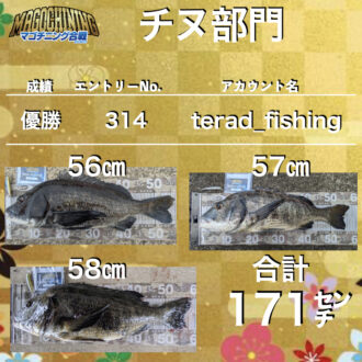 期間中にルアーによって釣ったチヌ(キビレ等のチヌ族を含む)3枚の写真を指定メジャー・指定キーアイテム・指定レギュレーションで撮影し、